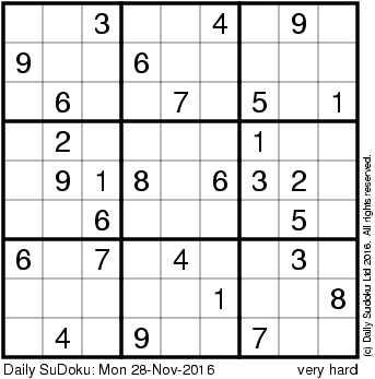 The Daily SuDoku: Mon 28-Nov-2016