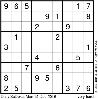 The Daily SuDoku: Mon 19-Dec-2016