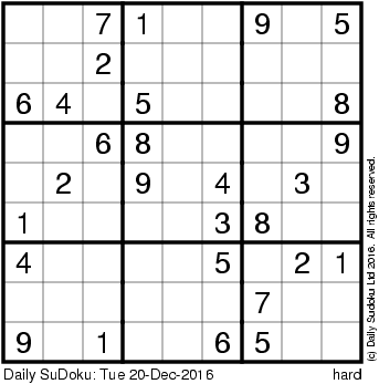 The Daily SuDoku: Tue 20-Dec-2016