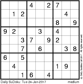The Daily SuDoku: Tue 24-Jan-2017