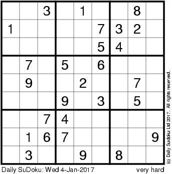 The Daily SuDoku: Wed 4-Jan-2017