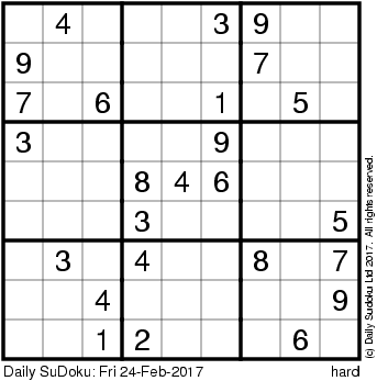 The Daily SuDoku: Fri 24-Feb-2017