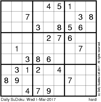 The Daily SuDoku: Wed 1-Mar-2017