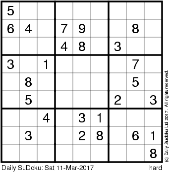 The Daily SuDoku: Sat 11-Mar-2017
