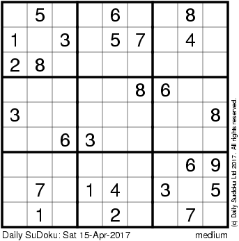 The Daily SuDoku: Sat 15-Apr-2017