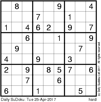 The Daily SuDoku: Tue 25-Apr-2017