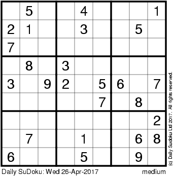 The Daily SuDoku: Wed 26-Apr-2017