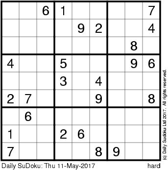 The Daily SuDoku: Thu 11-May-2017