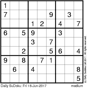 The Daily SuDoku: Fri 16-Jun-2017