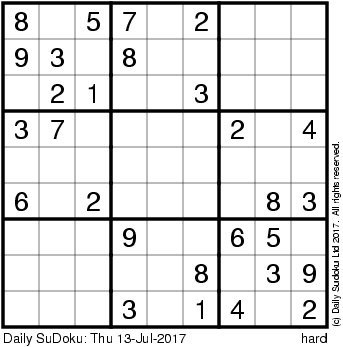 The Daily SuDoku: Thu 13-Jul-2017