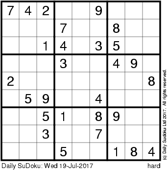The Daily SuDoku: Wed 19-Jul-2017