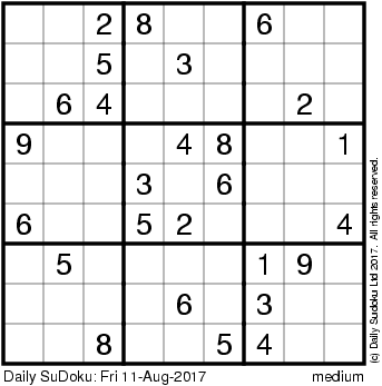 The Daily SuDoku: Fri 11-Aug-2017
