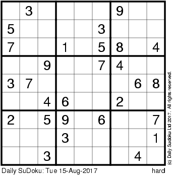 The Daily SuDoku: Tue 15-Aug-2017