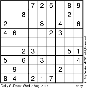 The Daily SuDoku: Wed 2-Aug-2017