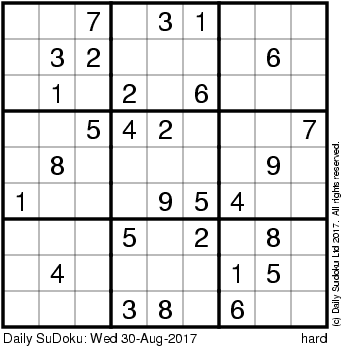 The Daily SuDoku: Wed 30-Aug-2017