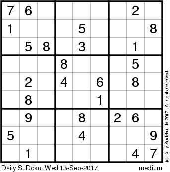 The Daily SuDoku: Wed 13-Sep-2017