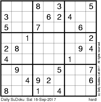 The Daily SuDoku: Sat 16-Sep-2017