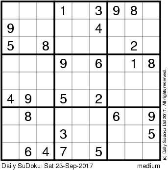 The Daily SuDoku: Sat 23-Sep-2017