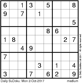 The Daily SuDoku: Mon 2-Oct-2017