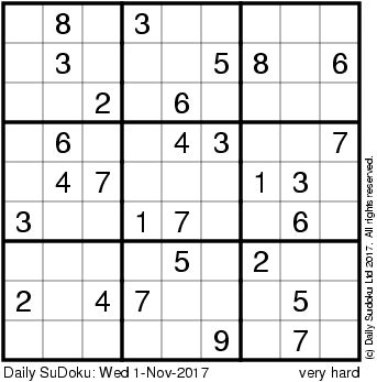 The Daily SuDoku: Wed 1-Nov-2017