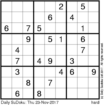 The Daily SuDoku: Thu 23-Nov-2017