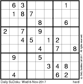 The Daily SuDoku: Wed 8-Nov-2017