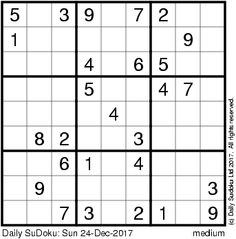 The Daily SuDoku: Sun 24-Dec-2017