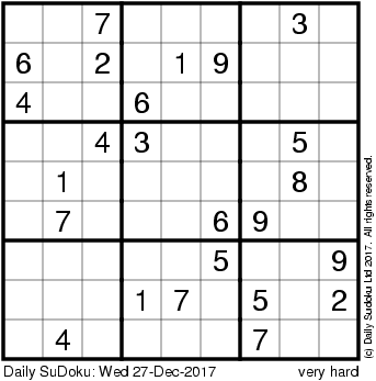 The Daily SuDoku: Wed 27-Dec-2017