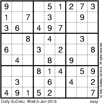 The Daily SuDoku: Wed 3-Jan-2018