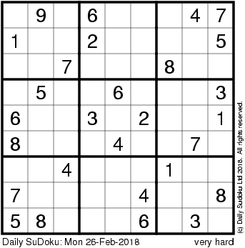 The Daily SuDoku: Mon 26-Feb-2018