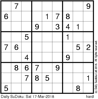 The Daily SuDoku: Sat 17-Mar-2018