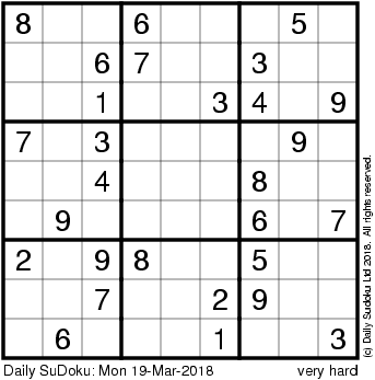 The Daily SuDoku: Mon 19-Mar-2018