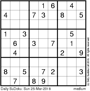 The Daily SuDoku: Sun 25-Mar-2018