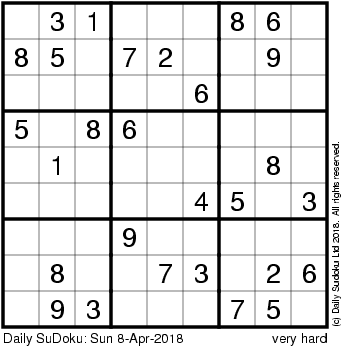 The Daily SuDoku: Sun 8-Apr-2018