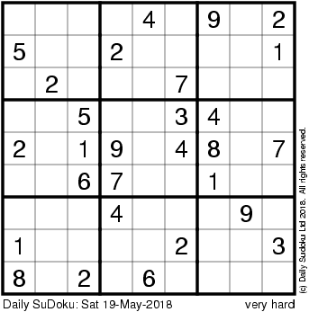 The Daily SuDoku: Sat 19-May-2018
