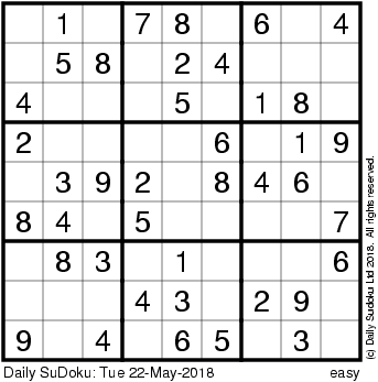 The Daily SuDoku: Tue 22-May-2018