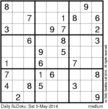 The Daily SuDoku: Sat 5-May-2018
