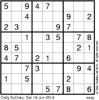 The Daily SuDoku: Sat 16-Jun-2018