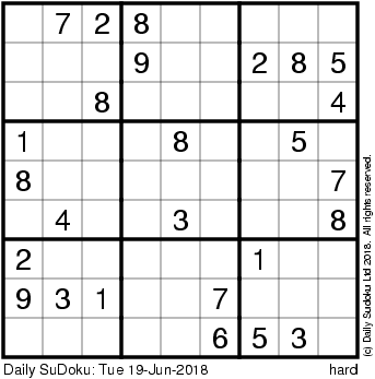 The Daily SuDoku: Tue 19-Jun-2018