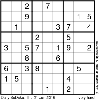 The Daily SuDoku: Thu 21-Jun-2018