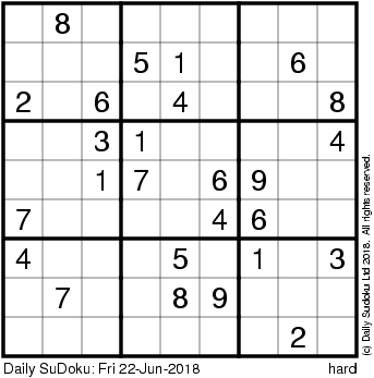 The Daily SuDoku: Fri 22-Jun-2018