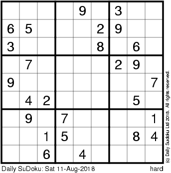The Daily SuDoku: Sat 11-Aug-2018