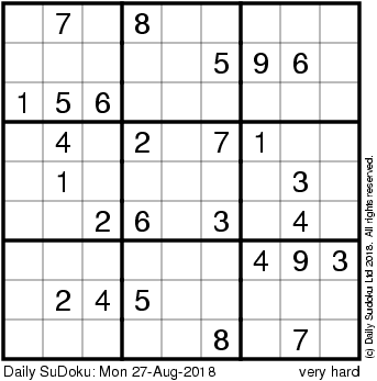 The Daily SuDoku: Mon 27-Aug-2018
