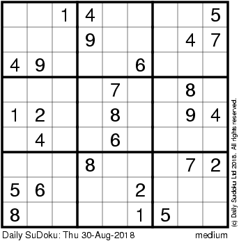 The Daily SuDoku: Thu 30-Aug-2018