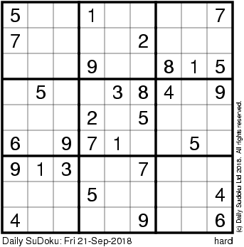 The Daily SuDoku: Fri 21-Sep-2018