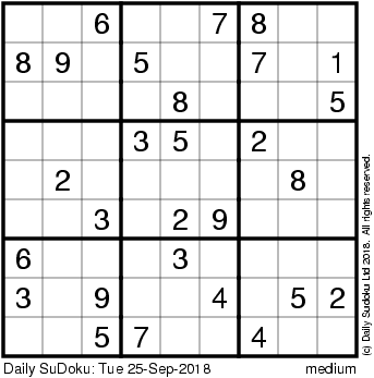 The Daily SuDoku: Tue 25-Sep-2018