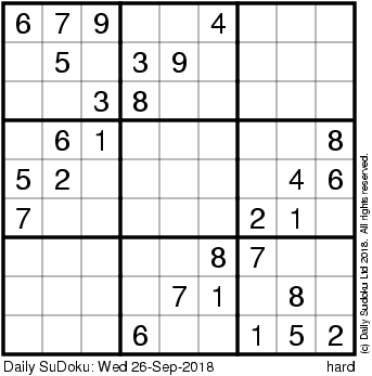 The Daily SuDoku: Wed 26-Sep-2018