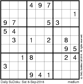 The Daily SuDoku: Sat 8-Sep-2018