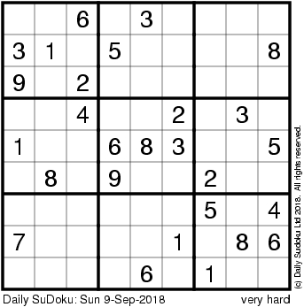 The Daily SuDoku: Sun 9-Sep-2018