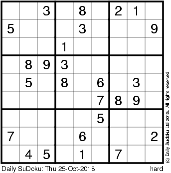 The Daily SuDoku: Thu 25-Oct-2018